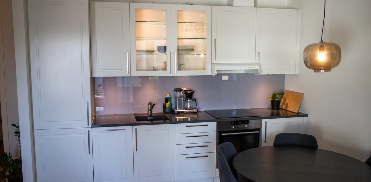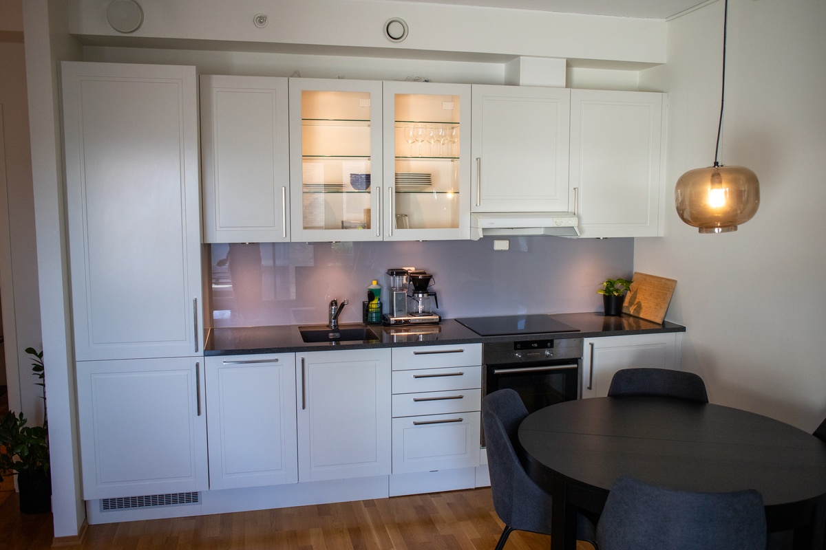 Leiligheten leies ut fullt møblert, så her kan du flytte rett inn uten å tenke på noe. Noen av møblene som er vist på bildene vil bli byttet ut innen utleieperioden. Kjøkkenet er også nesten fullt utstyrt med det man trenger.