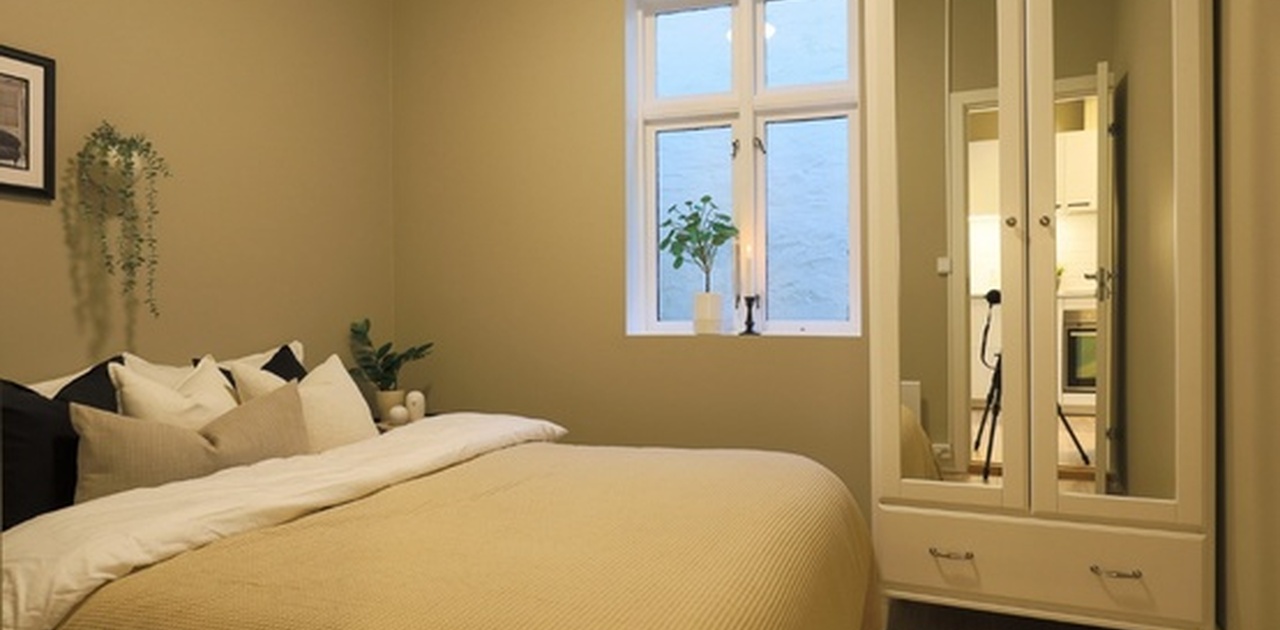 Møblene på bildene i annonsen følger ikke med leiligheten! Bare det ene skapet følger med.