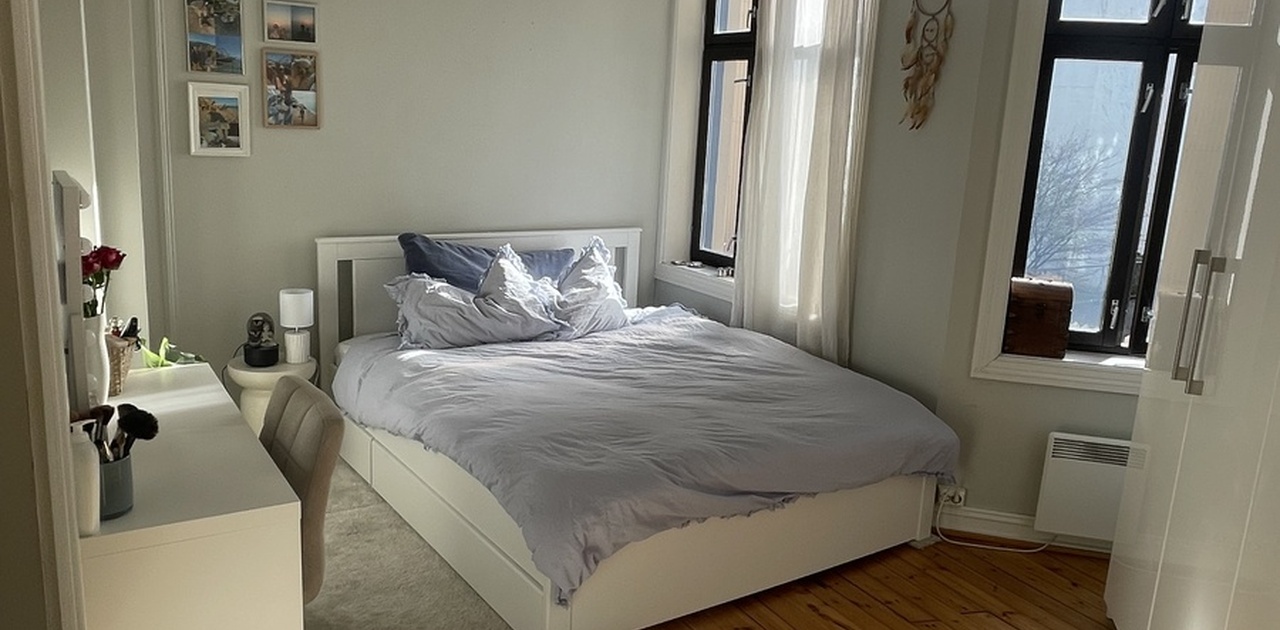 Vi er i dag tre jenter som bor i kollektiv på Grünerløkka, vi søker nå en ny leietaker da en av oss skal flytte, du kan både være student eller i Jobb. Det største rommet er ledig fra 01.06.26. Både seng og madrass kan kjøpes for en grei pris (160 seng). Leiligheten er ca 80 kvm. Leiligheten ligger også rett ved Sofienbergparken. Butikk, treningssentre, resturant og barer er også i nærheten. Både trikk og busstopp er ca 2min gange ifra oss.