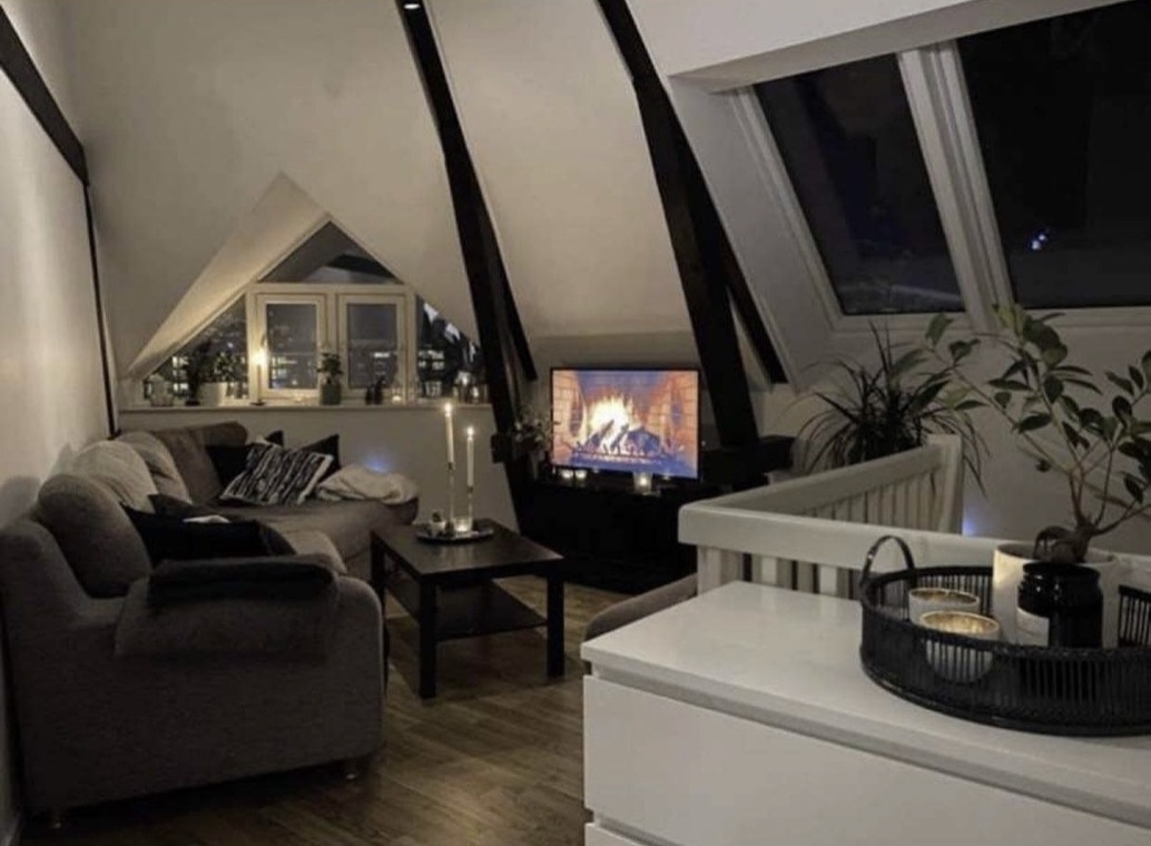 Leiligheten ligger sentralt på Solsiden med gangavstand til det meste og kun ett minutt fra bussen. Rommene har egen hems med plass til f.eks. sofakrok, pult eller seng, og et garderobeskap følger med. Det er også mulighet for å kjøpe møbler:)