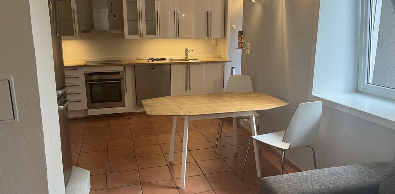Kjekk og sentral kjellerleilighet med hvitevarer, ellers møvblert etter ønske.