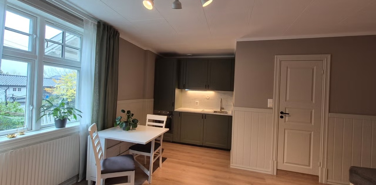 Vi leier nå ut en lys og trivelig ettromsleilighet på ca. 25 m² på gården vår. Leiligheten er kompakt og arealeffektiv, og passer svært godt for én person som ønsker en enkel, ryddig og lettstelt bolig i rolige omgivelser.