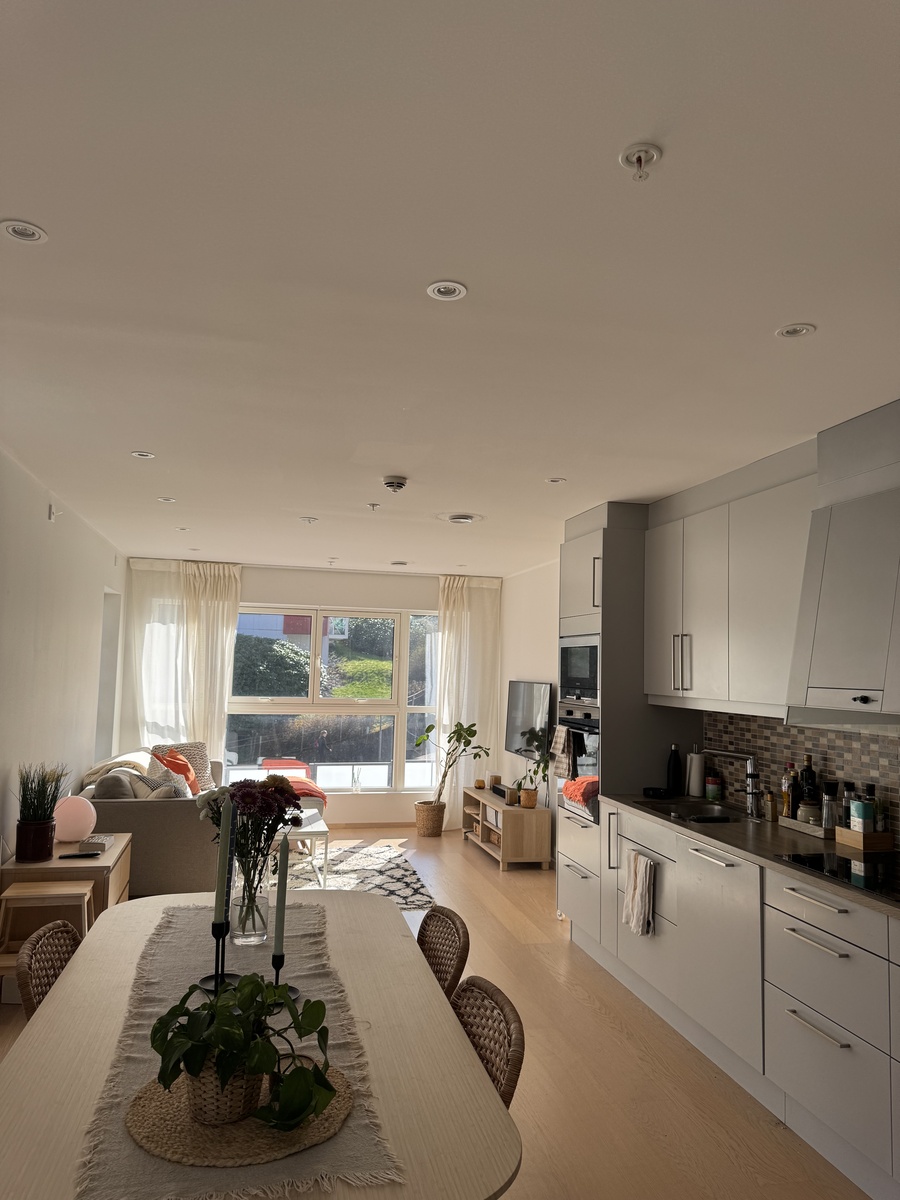 Leier ut en lys og fin leilighet perfekt for par eller studenter. Leieperioden er hovedsakelig fra og med juli, til og med desember, med mulighet for å fortsette å leie ett soverom videre.