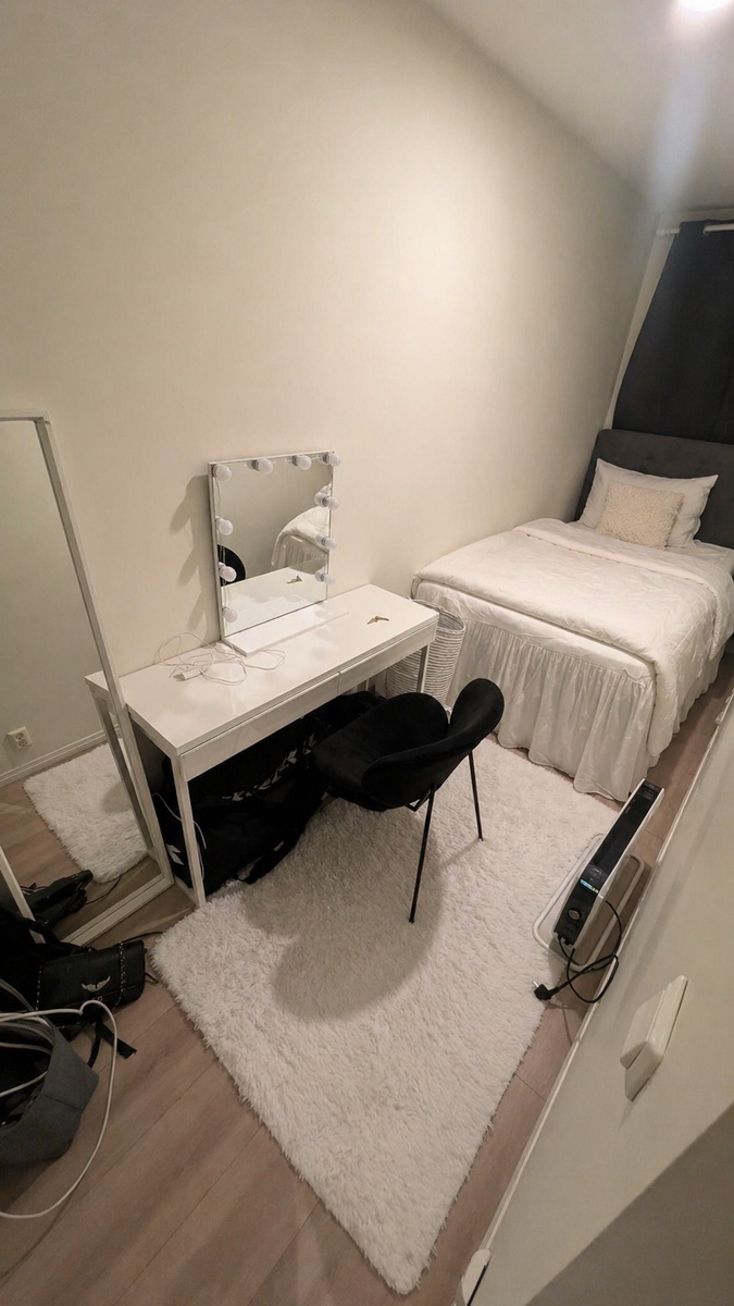Hei! jeg ser etter noen som kan ta over rommet mitt fra 1 juli i et koselig jentekollektiv med fire andre jenter. Leiligheten ligger midt i sentrum og rommet kommer umøblert men nåværende møbler kan kjøpes til en grei pris, det er også et stort klesskap til venstre for speilet som ikke vises på bildene. Leiligheten går over to plan, med stue, kjøkken, to bad og en bod. Leieprisen er på 6800 eksludert strøm og internett.