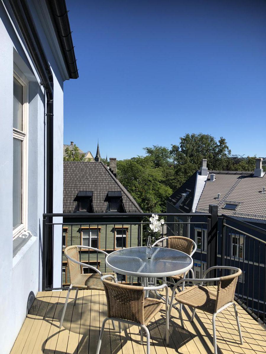 - Stor balkong med utsikt over byen (Nidarosdomen, Festningen, Øya, Nidelva)