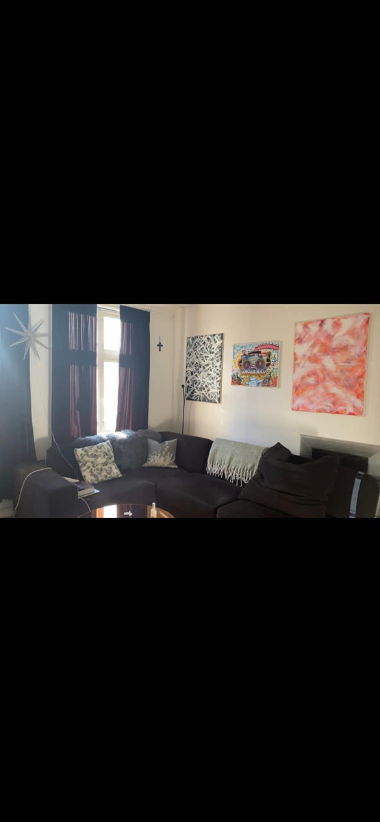 Leiligheten har stor lys stue. Soverom som man må gå igjennom for å komme til kjøkkenet og badet. Hvitevarer er inkludert i leien.