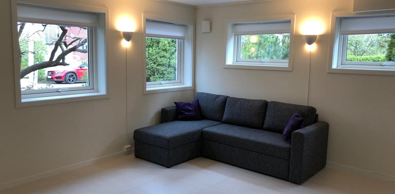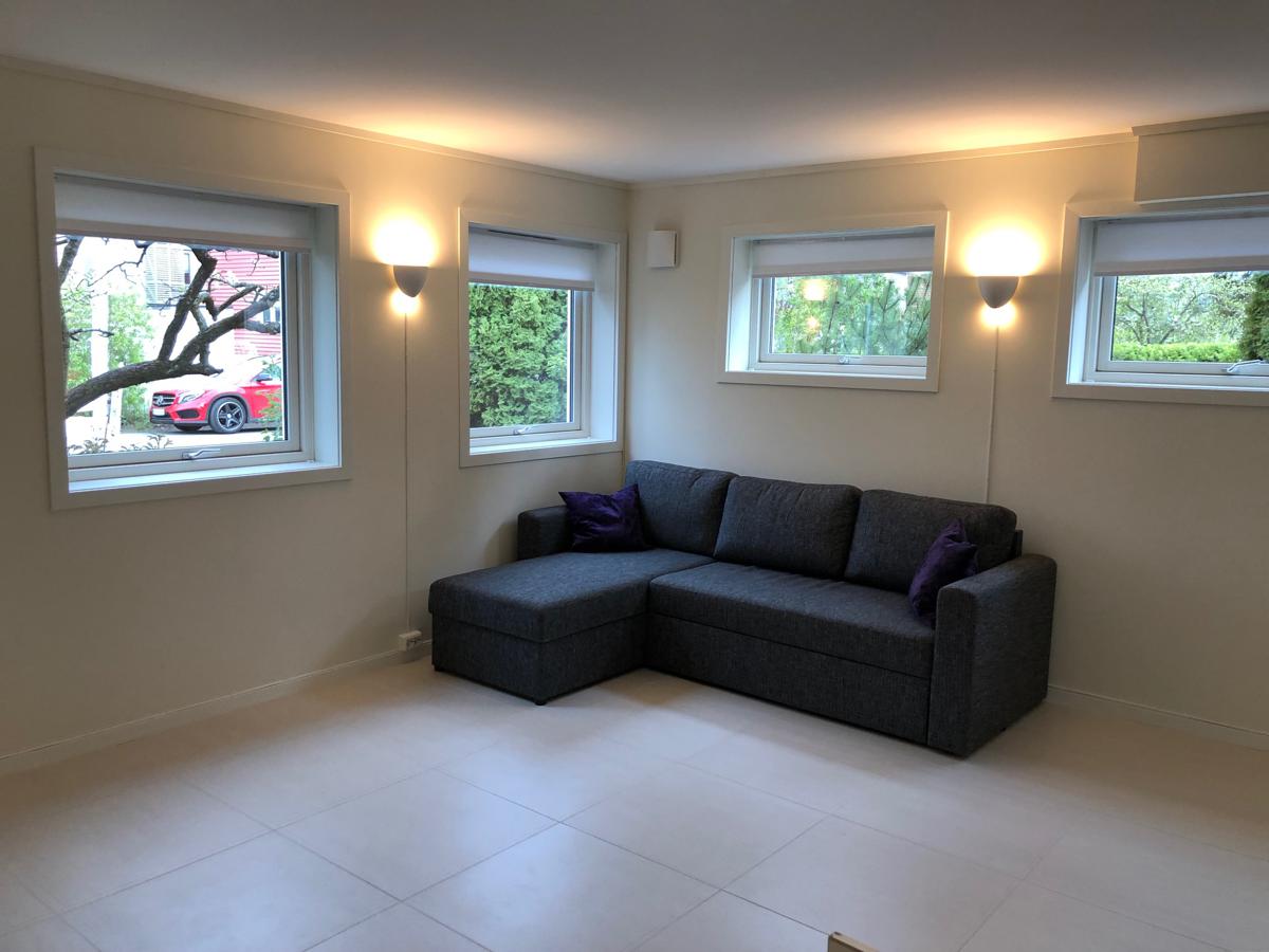 Det er varmekabler i alle gulv, flislagte gulv, vegger og tak er nymalte, og taket er lydisolert. Hybelen har 1 garderobeskap, stekeovn, 2 kokeplater med kjøkkenvifte, kjøleskap/frys, vaskemaskin og liten oppvaskmaskin.