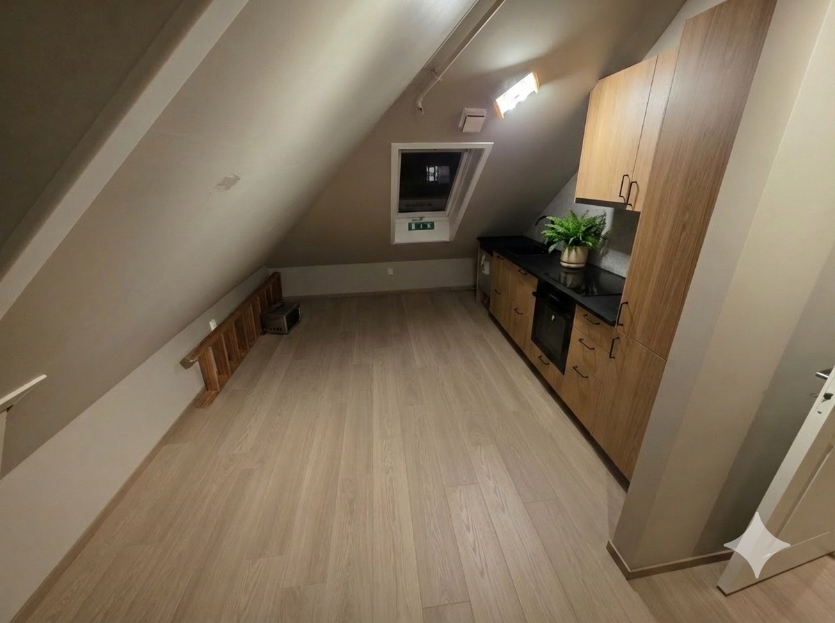 Ps: Det mangler fire kjøkkenfrontar frå Ikea, desse blir leverte i løpet av mars. Bilete av kjøkkenet er KI-generert for å vise det ferdig.