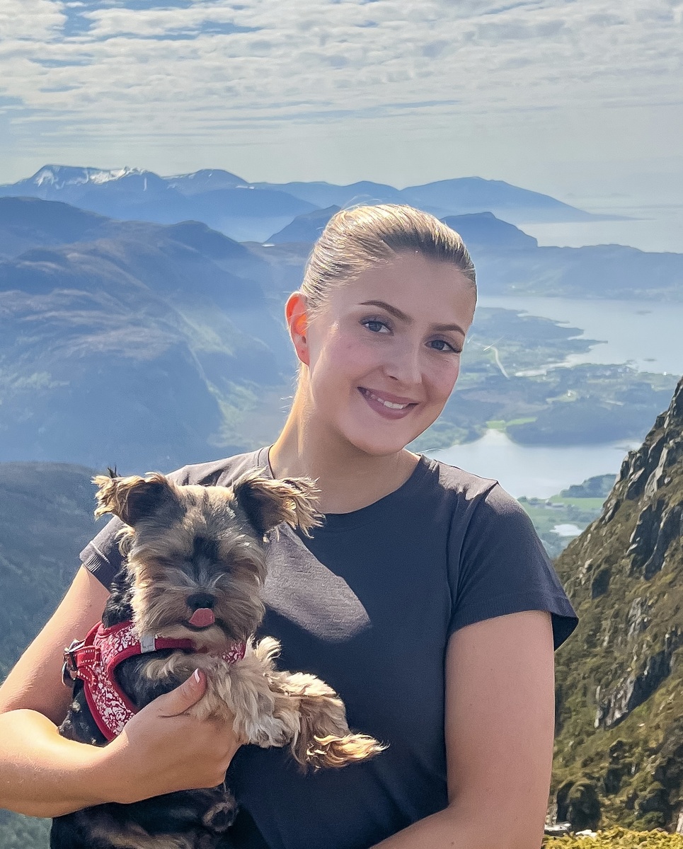 Jeg vil beskrive meg selv som sosial, blid, aktiv, ansvarlig og glad i å bli kjent med nye mennesker. Mine interesser er trening, musikk (lytting, ikke instrumenter), reising, turgåing, matlaging, mote og interiør.