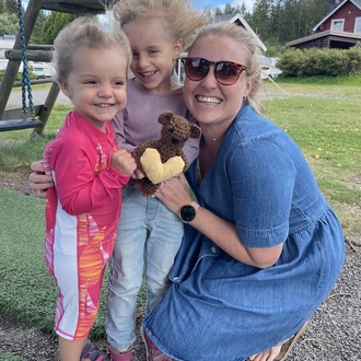 Jeg jobber fulltid på alarmsentralen til Gjensidige, som er en turnusjobb. Barna bor hos meg ca. 70 % av tiden, og vi liker å tilbringe tiden ute. Alt fra fjell- og skogturer til piknik i hagen eller på besøk hos en lekeplass i nærheten. Vi er rolige og ryddige ordensmennesker.