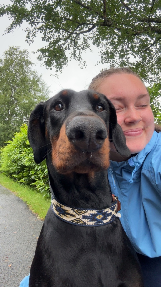 Lilo er min skygge, og fotfølger meg overalt. Når jeg ikke er hjemme ligger hun helst og sover i sengen min med lukket dør til jeg er tilbake. Skal jeg være lenge borte har jeg foreldre som passer!