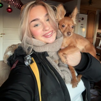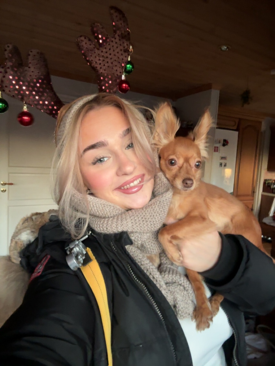 • Har liten rolig, menneskekjær hund (4 år gammel Embla)
