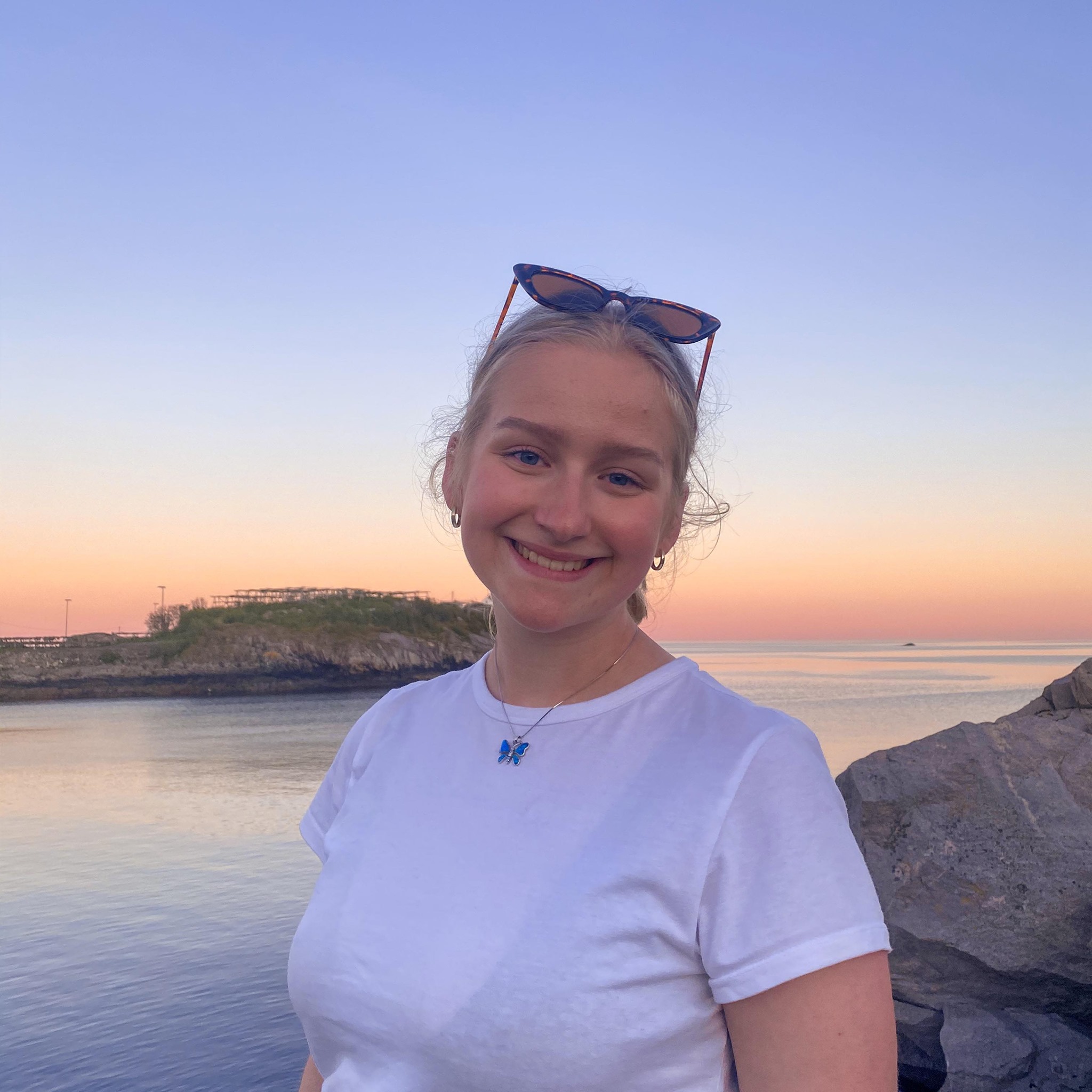 Hei! Jeg heter Dina og kommer fra Lofoten og Vesterålen! Jeg er ei blid og utadvent jente med mye fart i, som gjerne er ute å går i fjell og mark, eller leker seg i havet. Ellers setter jeg pris på rolige kvelder med god mat og strikking.