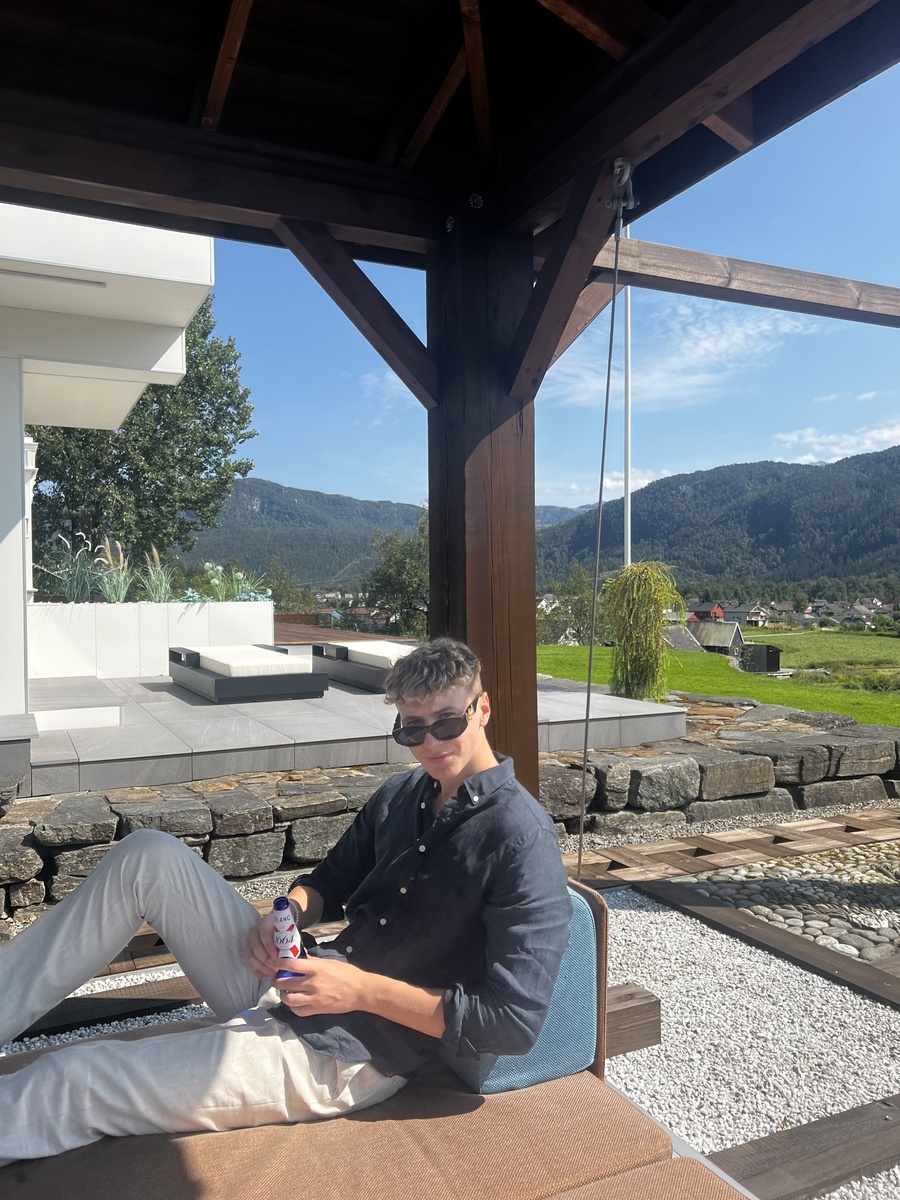 På fritiden liker jeg å holde meg aktiv, jeg trener styrke regelmessig og driver med ulike idretter som beachvolleyball, fotball, tennis og ski/randonnée om vinteren. Jeg trives best i ryddige og ordnede omgivelser, og ser på meg selv som en rolig, strukturert og ansvarsfull person. Samtidig er jeg sosial og positiv, og setter pris på en god balanse mellom å være rundt folk og ha tid for meg selv.