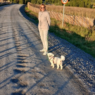 Voksen rolig dame, stabil og pålitelig. Har en bitteliten stille og renslig hund av rasen Bichpoo.
