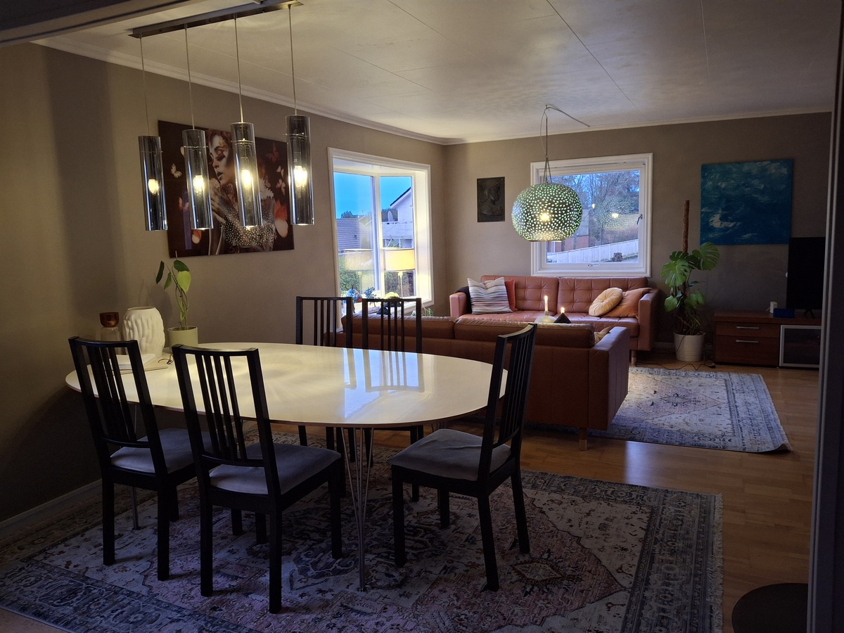 Vi er rolige og ryddige. Liker å treffe nye mennesker. Det er gode buss forbindelser og 4 km fra sentrum. Kort vei til matbutikk.