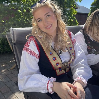 Jeg er 21 år og blir 22 om to uker. Jeg er på siste semester av bachelor i digital markedsføring ved Høyskolen Kristiania, og planen er å ta master videre. Ved siden av studiene jobber jeg deltid på Shoeday. Jeg er glad i kaffe, trening og det å være sosial 🩷