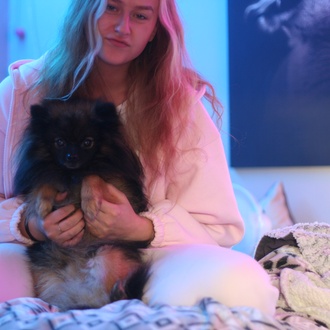 Ung jente å liten hund søker bolig.