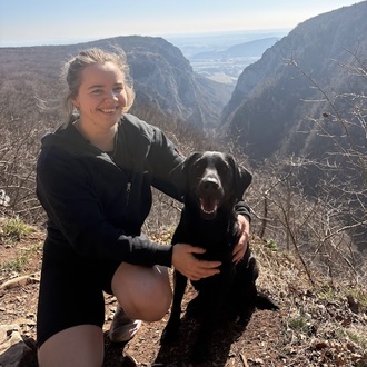 Jeg har med meg en 4 år gammel jaktlabrador som trenes i jakt og lydighet. Hun er rolig inne, snill og vant til å bo sammen med andre.